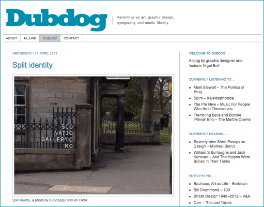 If you are an existing reader, much will be familiar to you. There will still be design critiques, posts about things I come across on a day-to-day basis, exhibition and conference reviews, typographic tantrums, and histrionic rants about whatever is pulling my tail at any particular moment. Music will continue to feature heavily. However, gone is the ‘anticipating’ list—I got fed up of posting exhibitions there and not getting round to seeing them. Current listening habits will now feature as a monthly round up and I’m currently in the planning stages of creating a dedicated page to reading habits.
