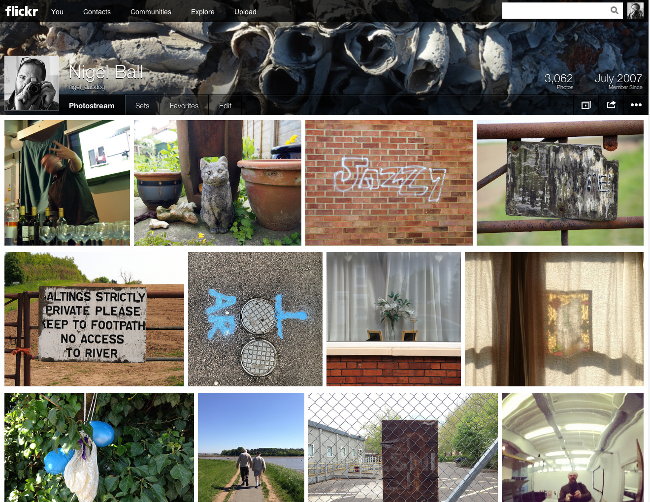 Visually, the new Flickr gives me a better view of all of my photos without having to enlarge them—previously the ‘large’ view was restricted to 5 images on my home page, which then switched to thumbnails for all subsequent pages. This always annoyed me. But now it gives an over view of someone’s visual interests from the outset. The photograph sizes are just enough to see what I want from the images I only want to ponder momentarily, and I can enlarge those that grab my attention and interest. Previously, past the first page, I had to enlarge pretty much every image to decide if I wanted to investigate them or not. This has got to be an improvement.