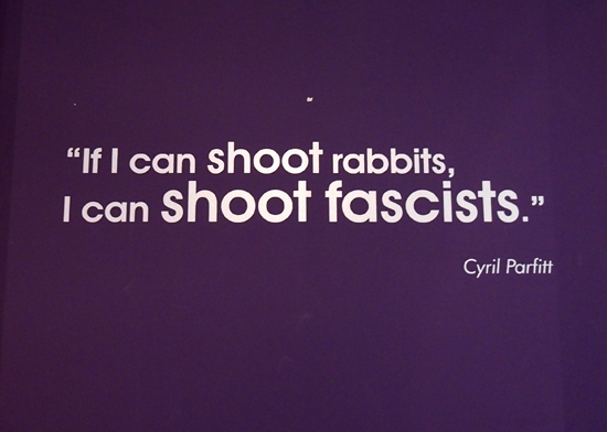 One of the most touching displays for me was a celebration of those that volunteered from the UK to fight fascists in Spain during the Spanish Civil War in 1936, including a typed and signed letter from George Orwell. There is something about this story that I always find moving. Having read and seen much about how ordinary people gave up their time, (and many their lives), to help fight the advance of fascism in Spain, so that the Spanish themselves could concentrate on fighting their own revolution, being confronted by collections of belongings from those on the front lines was over-powering.