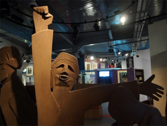 Claire and I visited Manchester for the first time at the end of April. Of the many things we saw and did, a highlight for us both was a visit to the People’s History Museum. Housed in a specially converted pump-house, the museum hosts an amazing visual display of artefacts relating to political history of ordinary people in this country, with an obvious bent towards Manchester related events and organisations, from the Peterloo Massacre to celebrating 150 years of the Co-op.