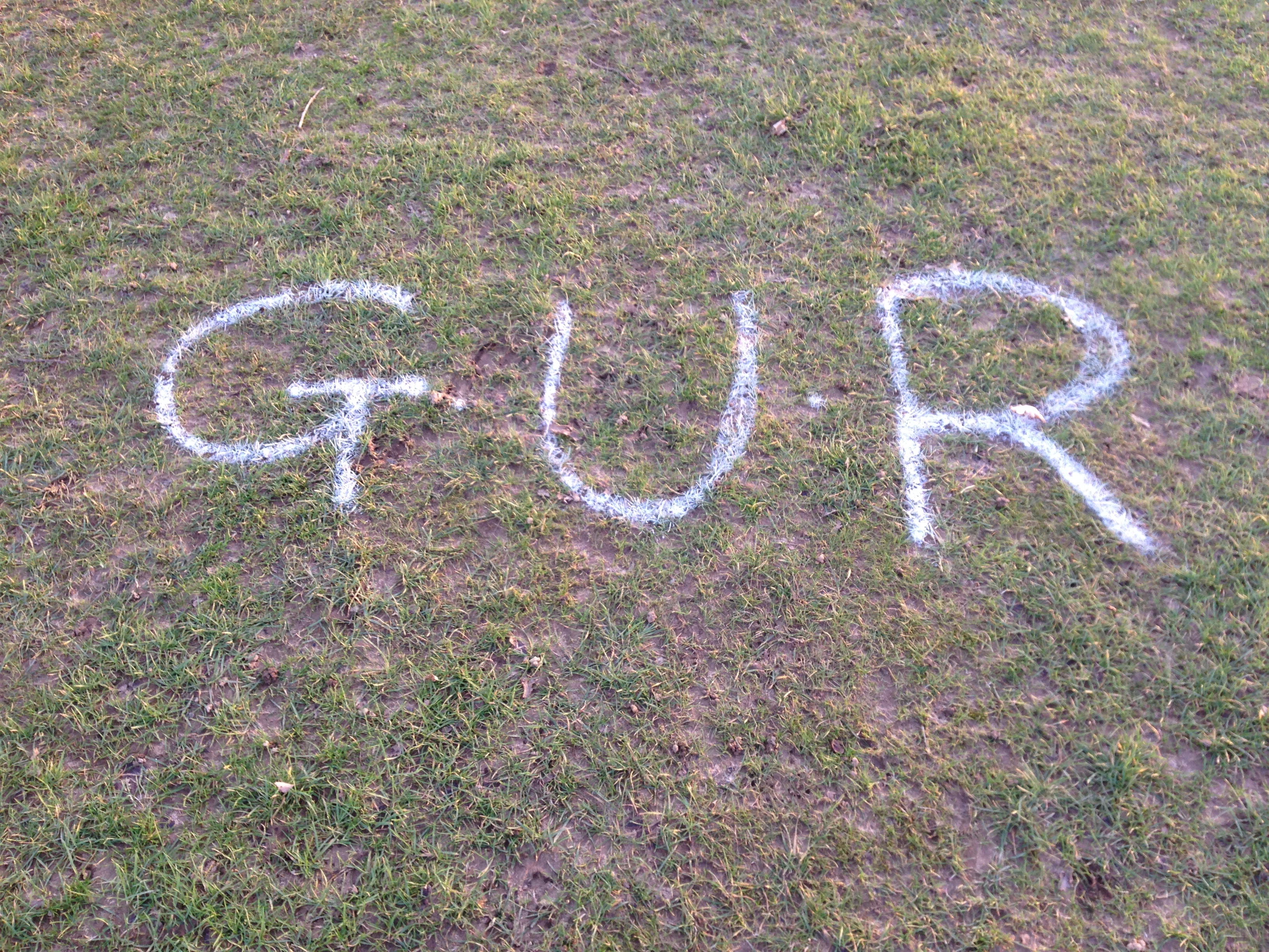 ImageLater, after returning from Woodbridge and taking the dog for a walk I found this spray painted GUR on a local heath that doubles as a golf course. I have no idea what GUR stands for, and as this is a golf course it is likely to be cut short before anyone will get to see how it develops. But it is still a piece of living typography while it lasts, as the grass grows.