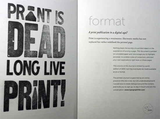 It is also very rewarding to receive Typography.journal through the post as Phillips envelopes the book in its own bespoke wrapping paper and includes print ephemera associated with the release and a hand-written note. This personal approach is a nice touch that reinforces the nature of the publication’s content as well as creating a connection with someone producing such an item half-way around the world.
